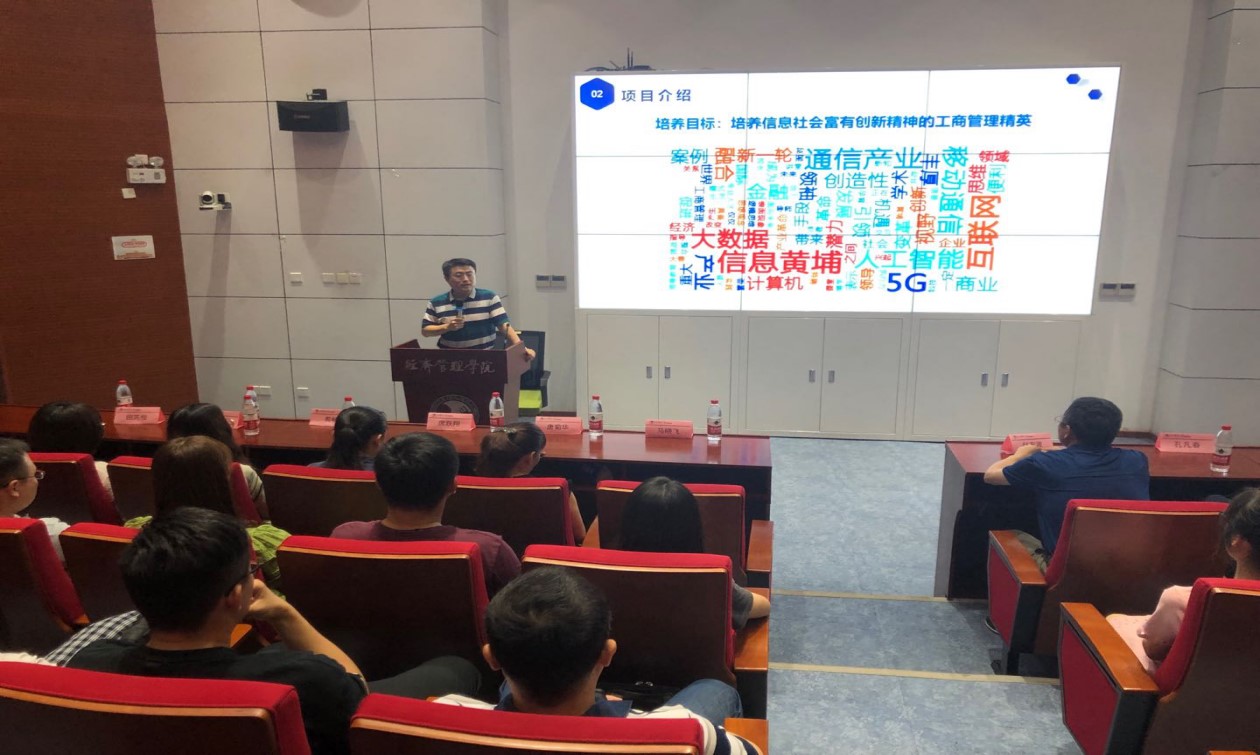 2019年7月13日上午,北京邮电大学2019级MBA新生见面会在北京邮电大学经管楼多功能厅213举行。见面会由2018级MBA联合会常务副主席周夕童主持,bat365中文官方网站副院长马晓飞副教授致欢迎辞,专硕教育中心主任唐菊华老师、招生主管席跃翔老师、教务管理易畅老师、论文管理袁文婷老师和辅导员田苏俊老师等一同出席。